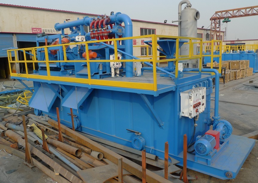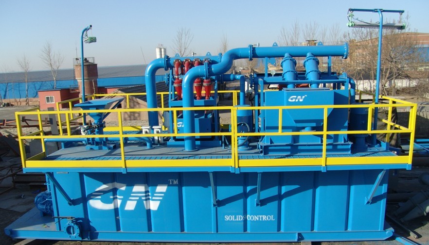?印度尼西亞客戶(hù)所要處理的流量是60m3/h,定向穿越系統(tǒng)設(shè)備主要包括 1,ZS63×125-3振動(dòng)篩(其中加上了兩個(gè)10〃 除砂旋流器) 2,CNQ60×160/4-8除泥器 3,射流混漿裝置(混漿漏斗和砂泵) 4, 兩個(gè)配套砂泵提供動(dòng)力裝置 5,泥漿罐及其附件